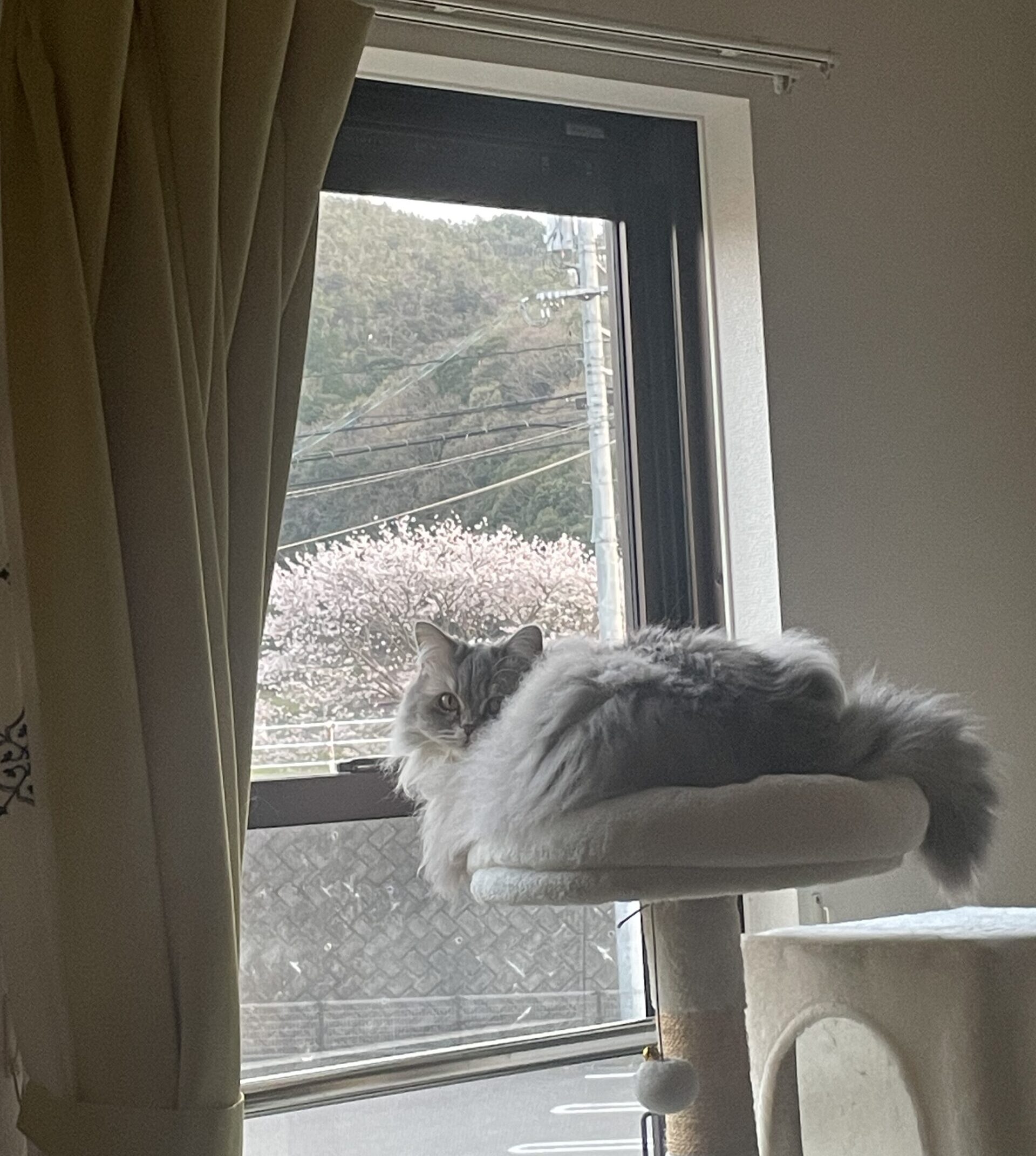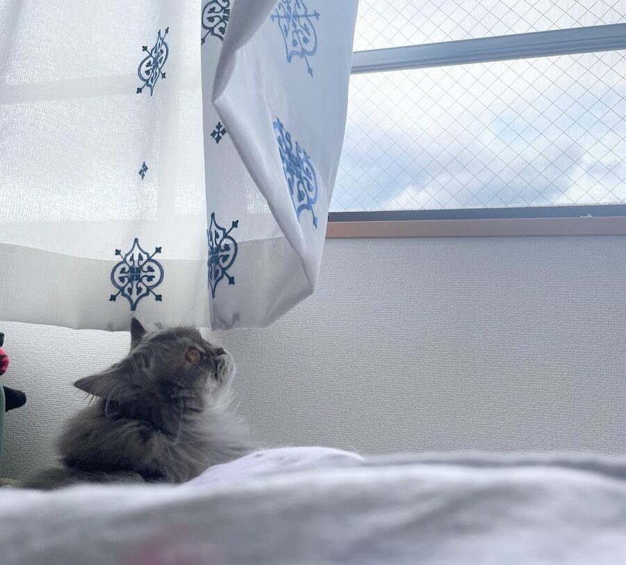 空気の入れ替えをしている時にちょうど風でカーテンが揺れた瞬間の写真☁️