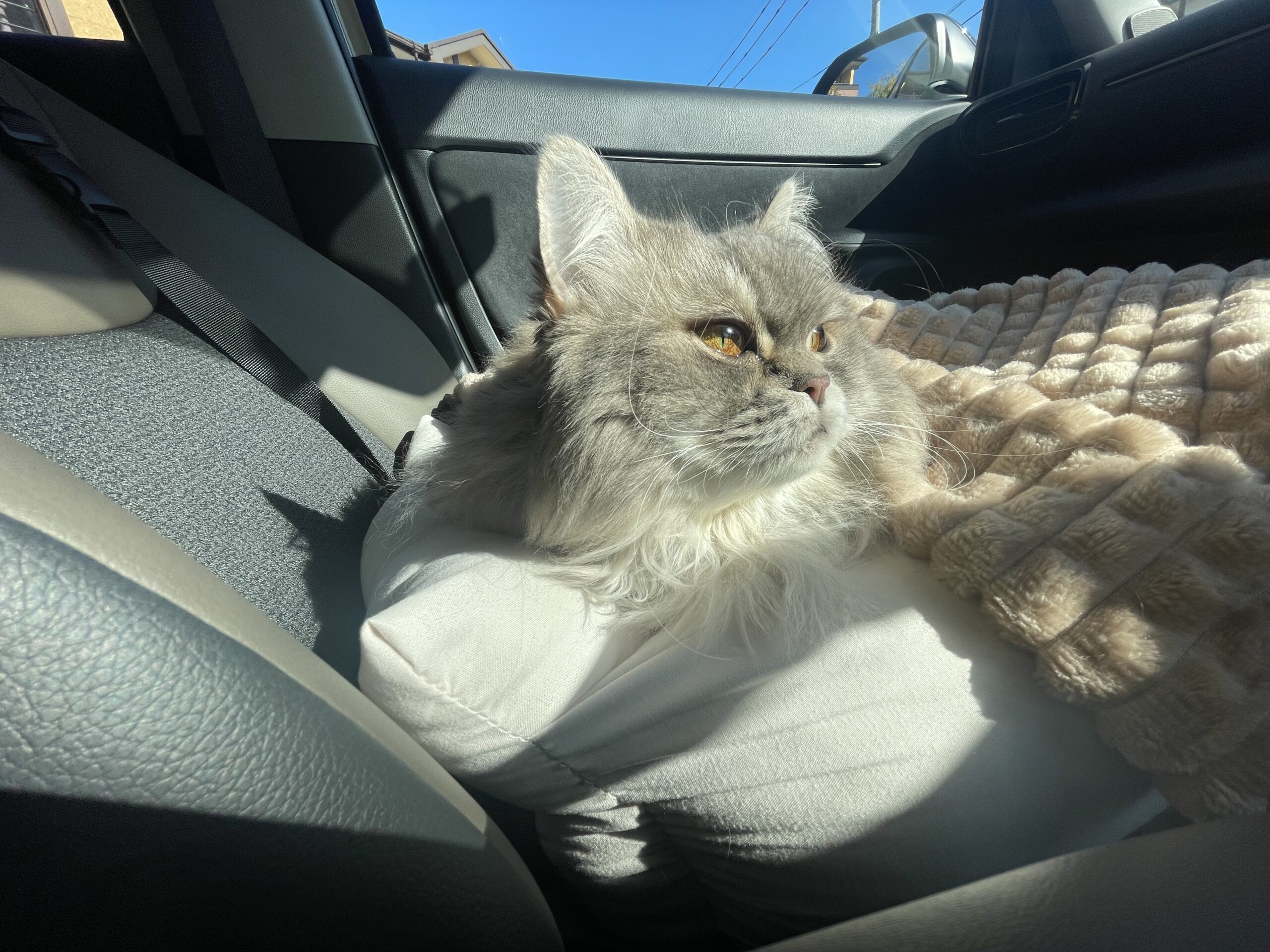 病院から帰ってきて安心したのか、キャリーの中が居心地良かったのかくつろいじゃっているエマ。