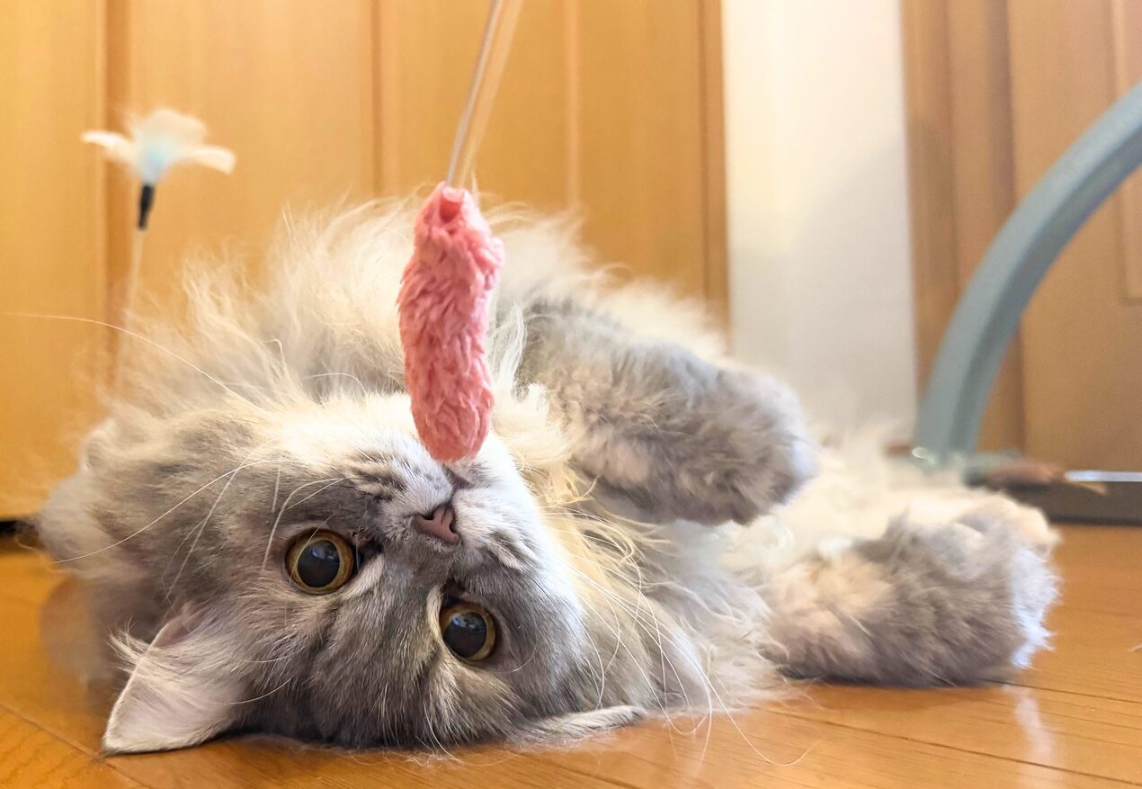そんなとこにねこじゃらし置かれてるのに、何そのきょとんとした表情。。。と思っていたら目が離せなくなりました 笑