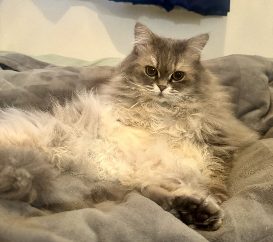 朝の毛繕い中のエマはまさにぬいぐるみ♡