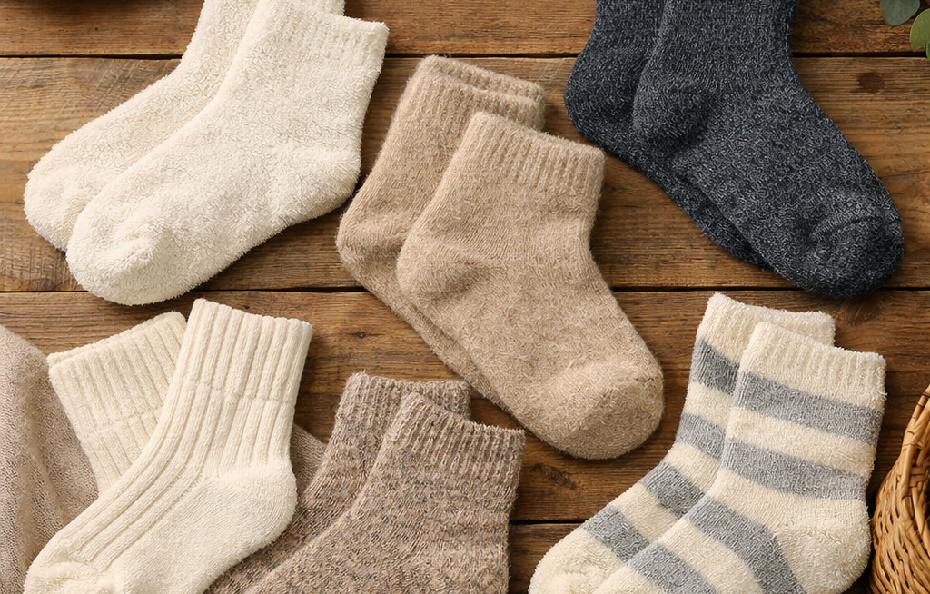 やさしく包み込まれるような履き心地の、天然素材のルームソックス