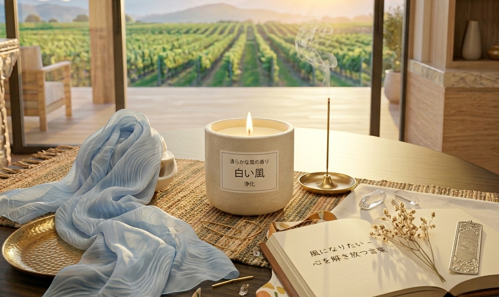 白い風の「浄化」を助け、精神を安定させる香りで空間を整えます。