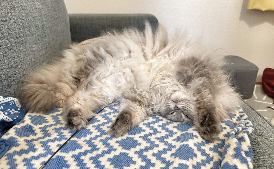 おもちゃを体の下に敷いたまま、爆睡です(*´꒳`*)