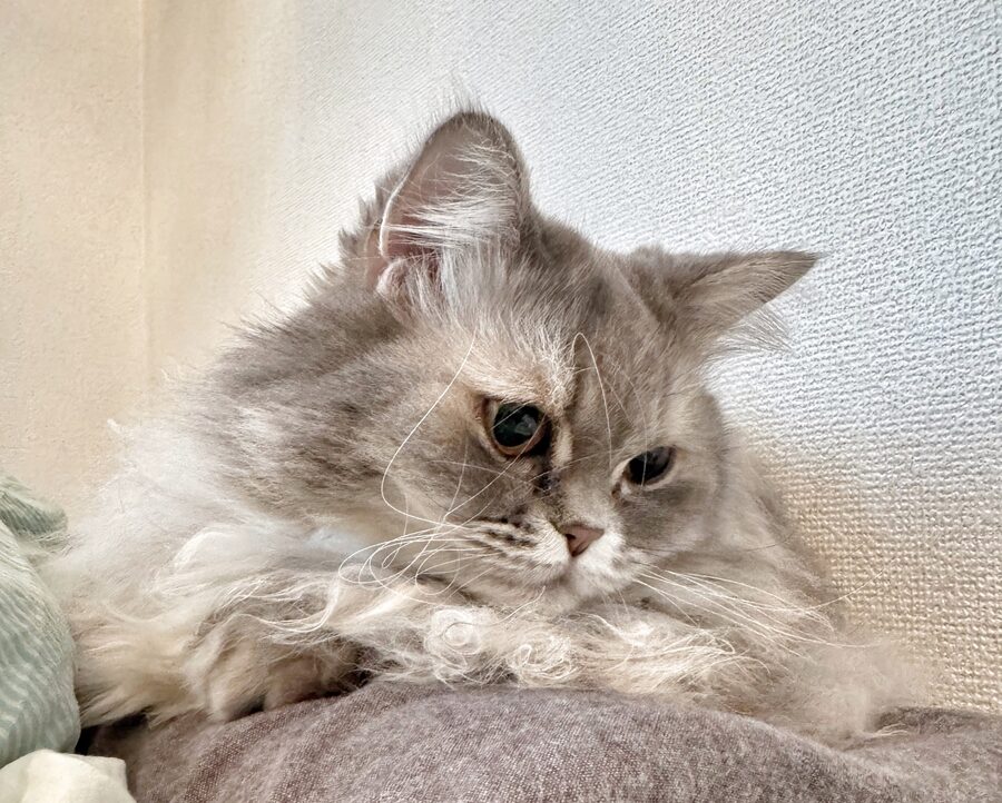 ふとした時に気づいたんです。うちの子のひげの癖がすごいなあと💦