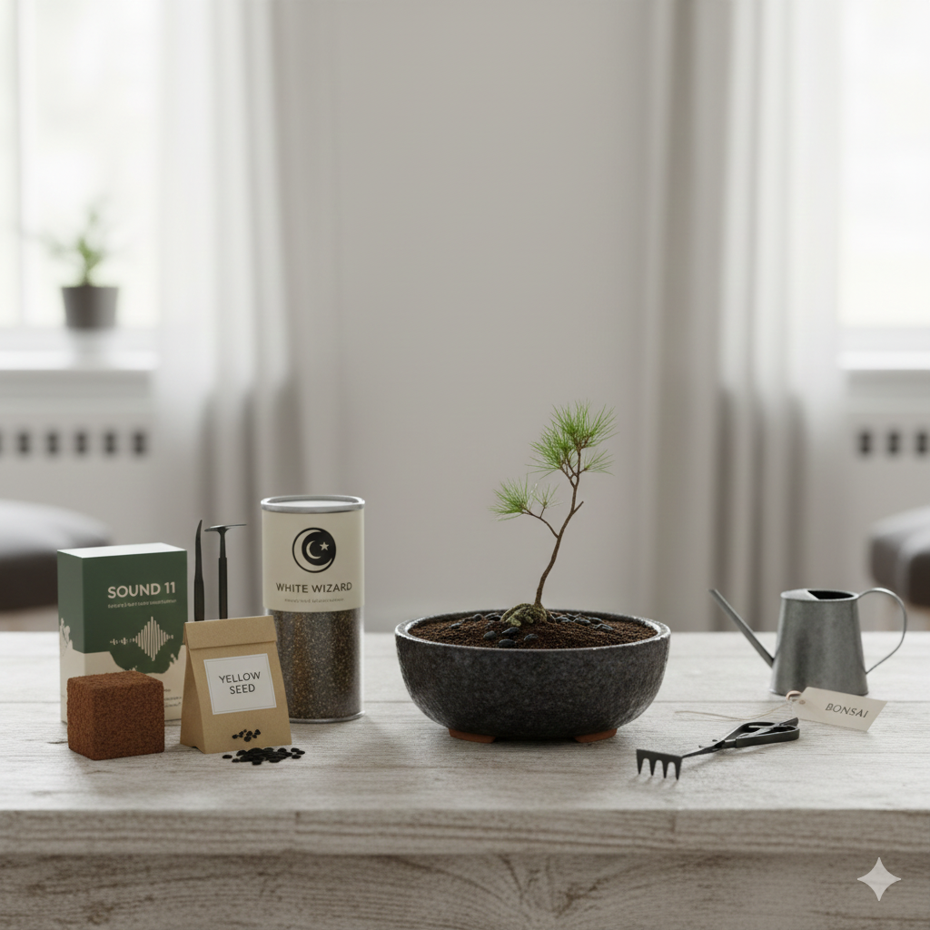 生命の神秘を体験: 小さな「黄色い種」から松が芽吹き、年月をかけて盆栽へと姿を変える過程は、まさに「白い魔法使い」が時間をかけて創造する芸術。日々の成長から、生命の力強さと神秘を感じられます。