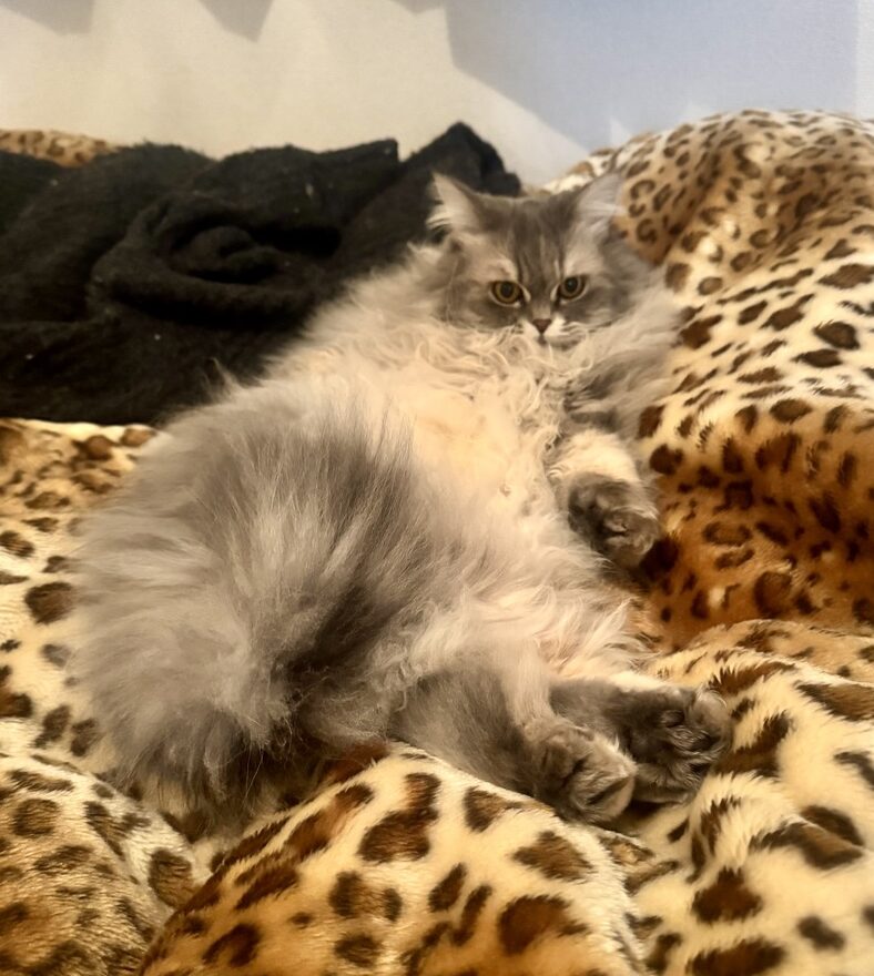 エマが寒くないように掛け布団の上に敷いているレオパード柄の毛布。