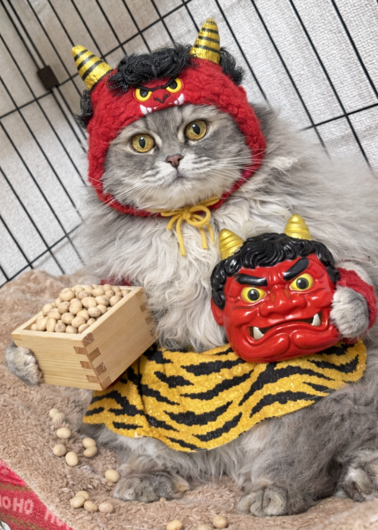 エマも恵方の方を向いてごはんを食べてもらっています。