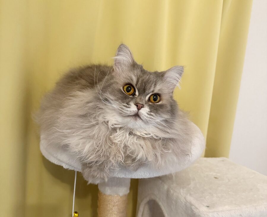 痛み止めが切れている時間にも関わらずキャットタワーに登ったエマ。