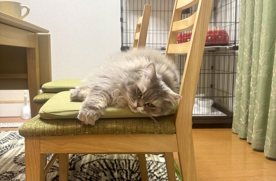 私がいつも座る椅子を占領するエマ。